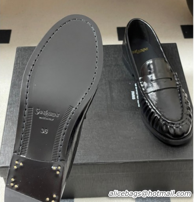 Unique Style Saint Laurent Le Loafers Penny Slippers in Oil Leather Black/Gold 1215007
