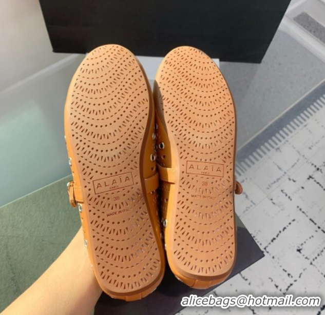 Your Position: Home > Shoes Plaza > Alaia Shoes > Low Cost Alaia Ballet Flat in Openwork Leather with Eyelet Light Brown 1223010