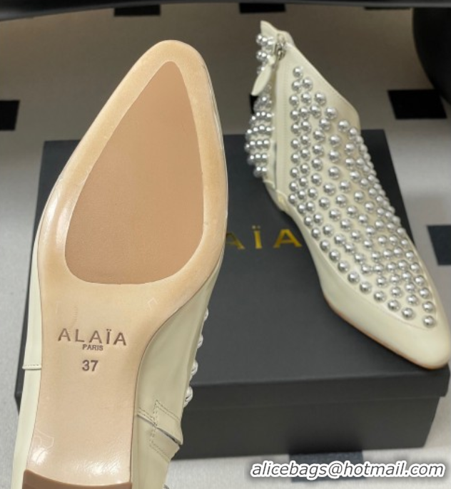 Grade Quality Alaia Wedge Heel Ankled Boots with Studs White 2025 AL070906 0827119