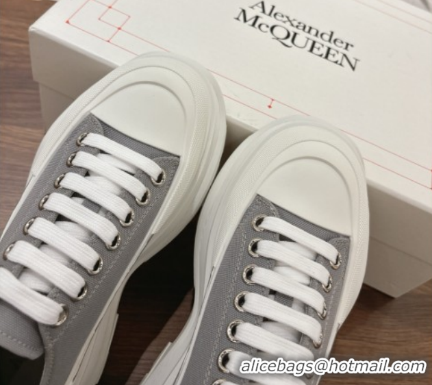 > Shoes Plaza > Alexander Mcqueen Shoes > Low Cost Alexander McQueen Tread Slick Canvas Lace Up Sneakers 5cm Grey 208005 2026