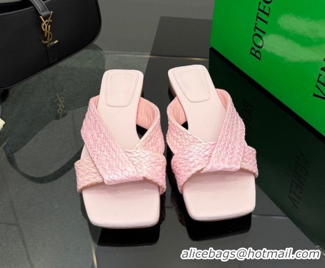 Luxurious Bottega Veneta Riva Flat Slides Sandal in Braided Straw 861494 Light Pink 2026