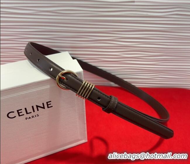 Low Cost Celine Calfskin Leather Belt 2cm with Pin Buckle CE091103 Dark Brown 2025
