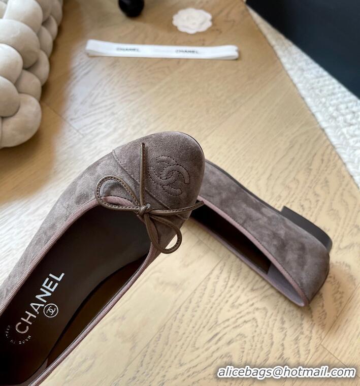 Low Cost Chanel CC Ballet Flat With Bow Suede CH1023 Dark Brown