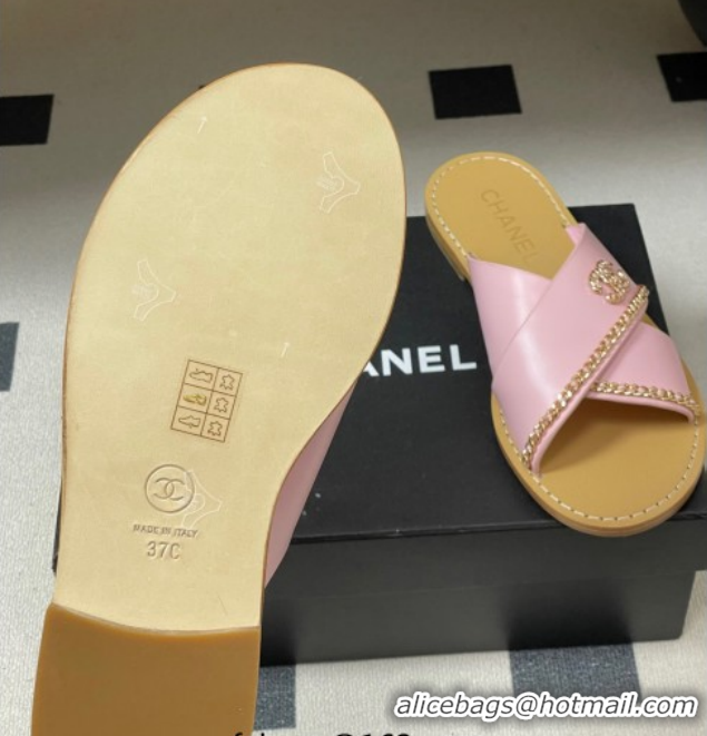 Low Price Chanel Calfskin Leather Flat Slides Sandal with Chain G46976 Pink 2026