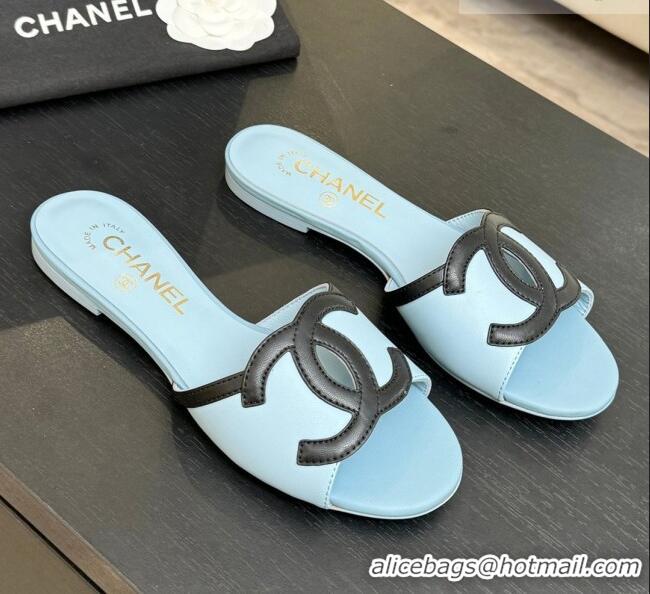 Good Taste Chanel Lambskin Flat Mules Sandals G47252 Blue 2026