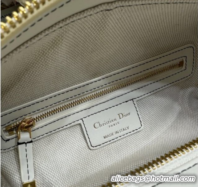Discount Dior Small D-Journey Bag in Two-Tone Calfskin Leather in White Flat Macrocannage with Contrasting Black Topstitching 0124055 2026