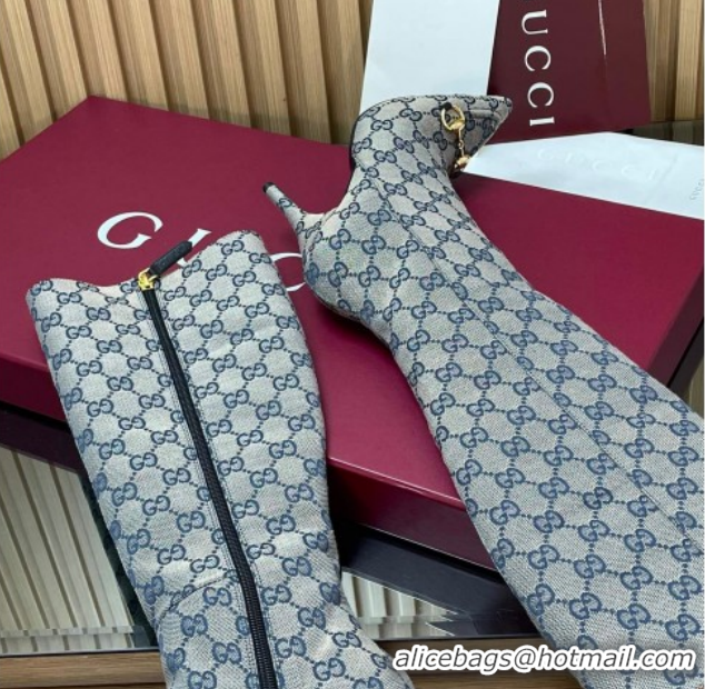 Charming Gucci GG Canvas Heel High Boots 10cm with Horsebit 835738 Grey 2026