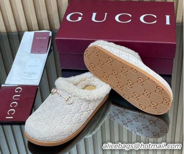 Popular Style Gucci GG Suede and Wool Flat Mules with Horsebit Pale Grey 836057 1020007