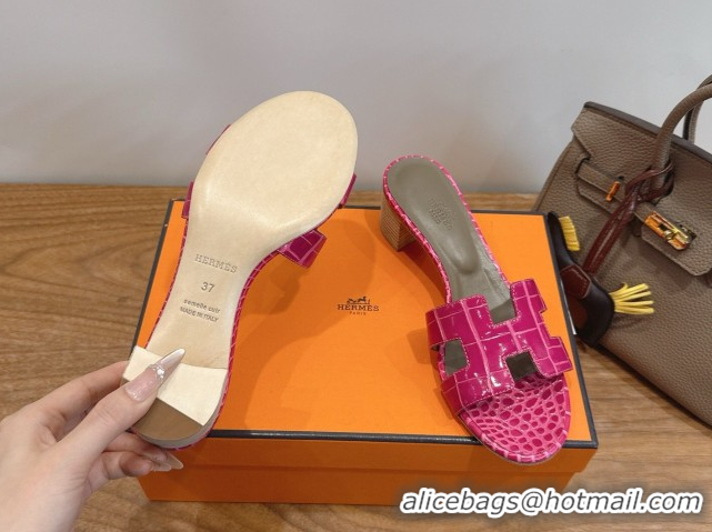 Your Position: Home > Shoes Plaza > Hermes Shoes > Luxurious Hermes Oasis Classic Heel Slides Sandal 4.5cm in Crocodile Embossed Leather Dark Pink 0304033