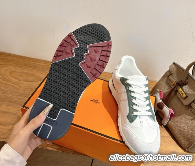 Generous Hermes Trail Sneakers in Calfskin and Suede White/Green 1222015 2026