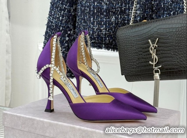 Good Looking Jimmy Choo Stevie Pumps 9cm in Satin with Strass Strap Purple 0206108 2026