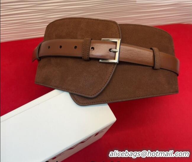 Low Cost Loewe Suede and Leather Waist Belt 12cm LW031701 Dark Brown 2026