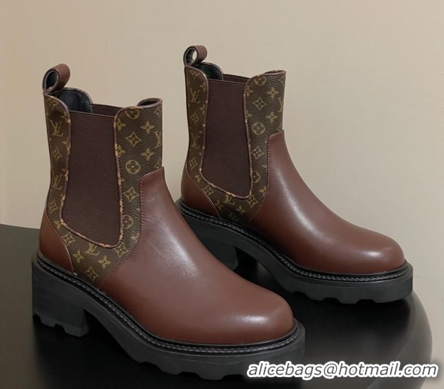 Cheap Price Louis Vuitton LV Beaubourg Chelsea Ankle Boots in Monogram Canvas and Leather Brown 1AIEJ4 1022057