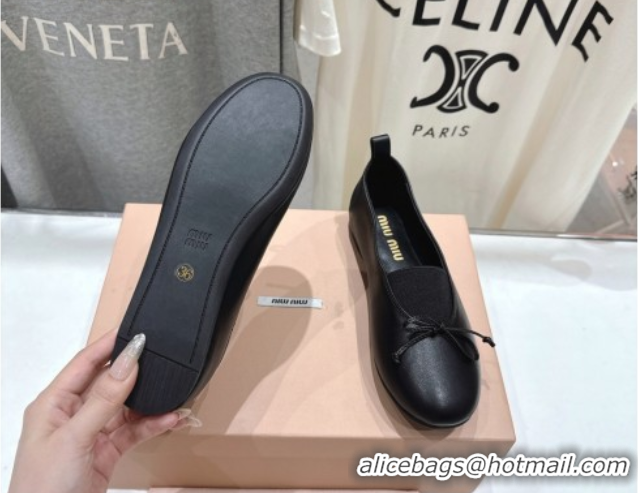 Luxurious Miu Miu Elan Nappa Leather Ballerinas Flat with Bow and Elastic Gusset Black 5F552E 1025055 2025