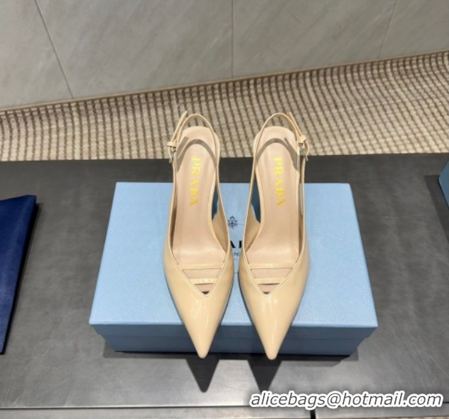Low Cost Prada Patent Leather Heel Slingbacks Pump 7.5cm Beige PR120601 1206005 2026