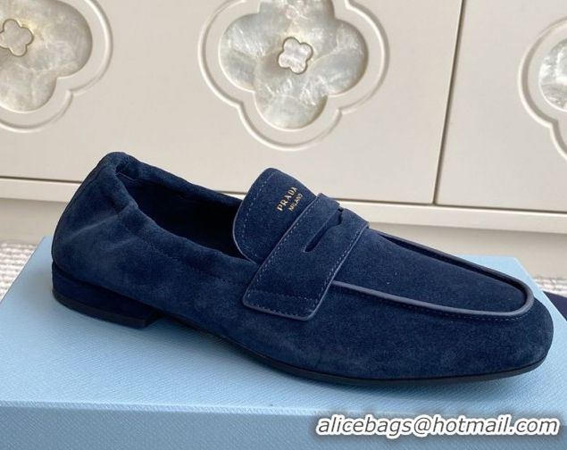 Best Price Prada Shuffle Antiqued Suede Loafers Blue 2025 1D051O 1027056