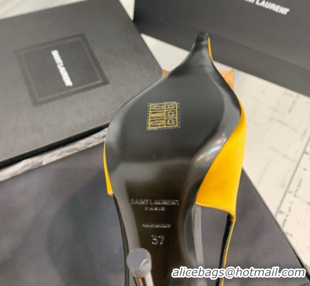 Low Cost Saint Laurent AMALIA Heel Slingbacks Pump 11cm in Satin Crepe with Square Rose Yellow 1212100