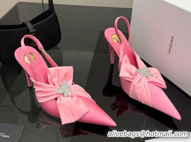 Perfect Saint Laurent Dove Slingback Pumps 10.5cm in Satin with Bow Light Pink 2026 SL022404