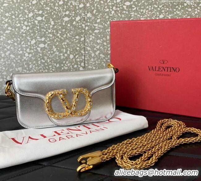 Your Position: Home > Valentino Handbag > Low Cost Valentino Loco Small Shoulder Bag in Laminated Calfskin with Jewel Logo 5061 Silver 2025