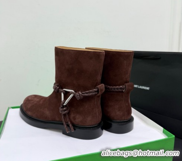 Popular Style Bottega Veneta James Suede Flat Ankle Boots with Triangle Buckle Dark Brown 1206053 2026