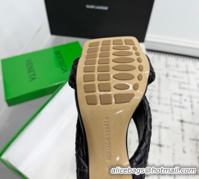 Sumptuous Bottega Veneta Riva Heel Slides Sandal 9cm in Woven Leather Black 1027155