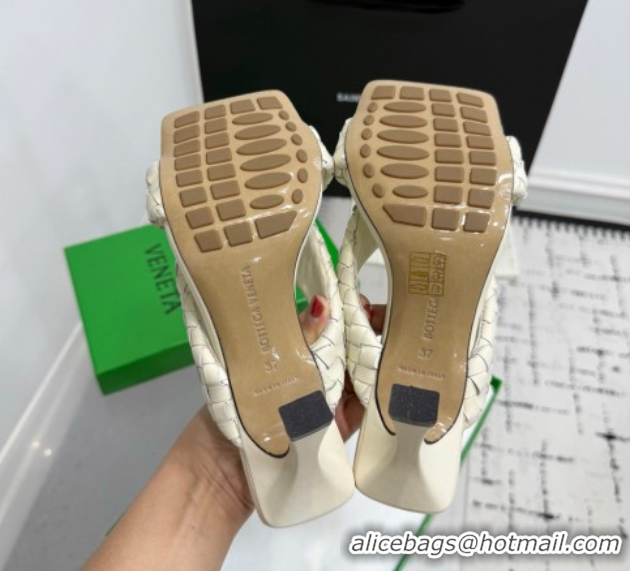 Low Price Bottega Veneta Riva Heel Slides Sandal 9cm in Woven Leather White 1027156