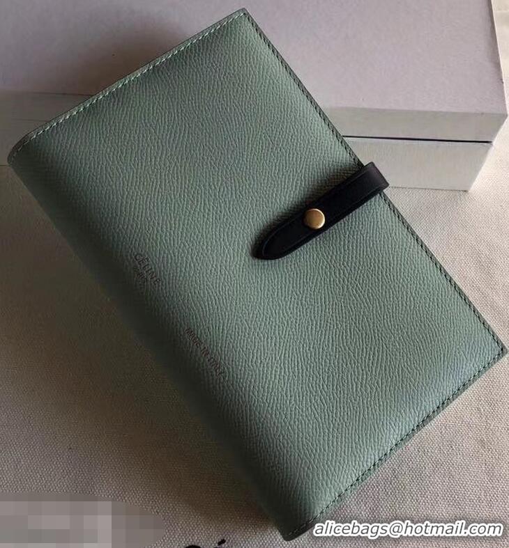 Low Price Celine Bicolour Large Strap Multifunction Wallet 952101 Pale Green/Navy Blue