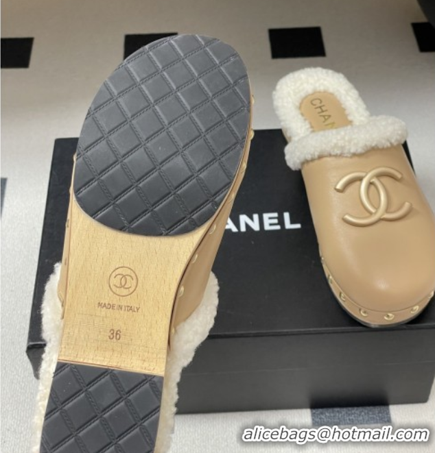 Buy Discount Chanel Calfskin Mules with Shearling CH102004 Beige 2025