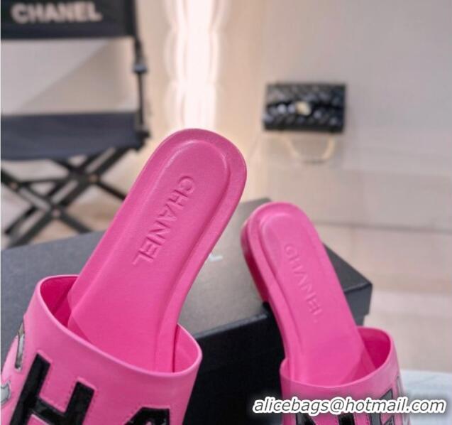 Good Quality Chanel Lambskin & Patent Calfskin Flat Slide Sandals Dark Pink 428116