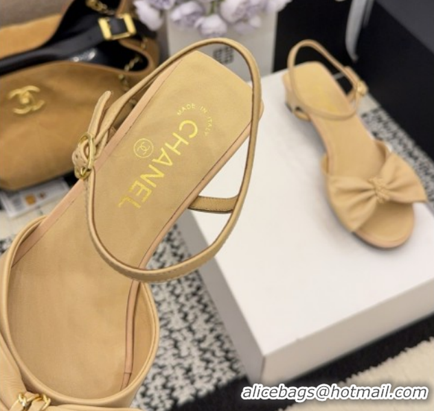 Top Grade Chanel Calfskin Leather Heel Sandals 3.5cm with Bow G46813 Beige 2026