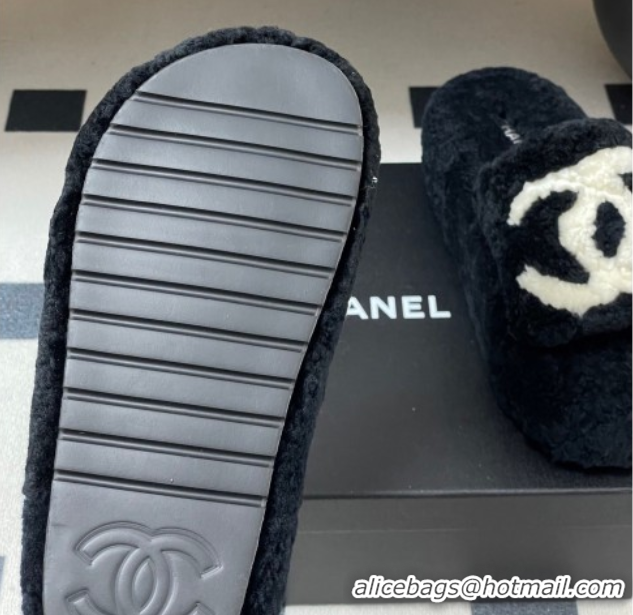 Low Price Chanel Wool Platform Slides Sandal with Maxi CC Black 2025 CH110306 1103086