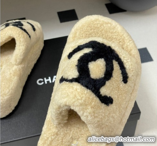 Discount Chanel Wool Platform Slides Sandal with Maxi CC Beige 2025 CH110306 1103087