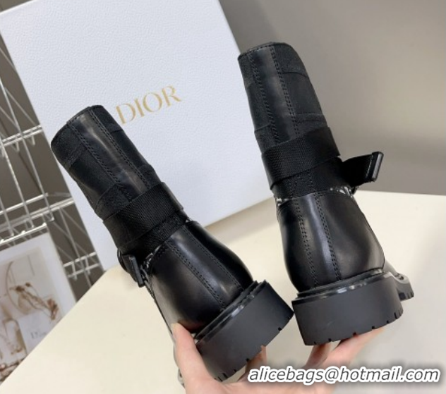 Sumptuous Dior D-Major Ankle Boots in Fabric and Calfskin Black/Oblique D09021 1029018