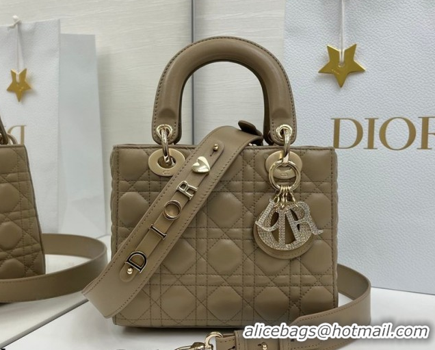 Good Looking Dior Small Lady Dior My ABCDior Bag in Cannage Lambskin Leather with Strass Charm Khaki 0126057 2026