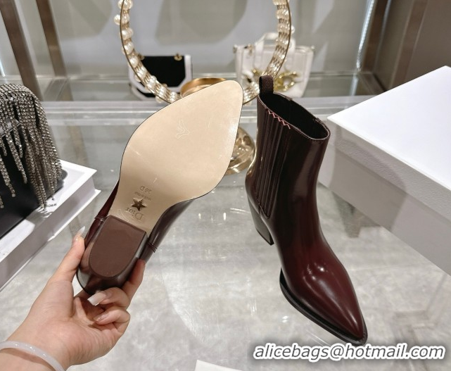 Good Product Dior Wild Heeled Ankle Boots 5cm in Calfskin Leather Dark Burgundy DR121610 1216128