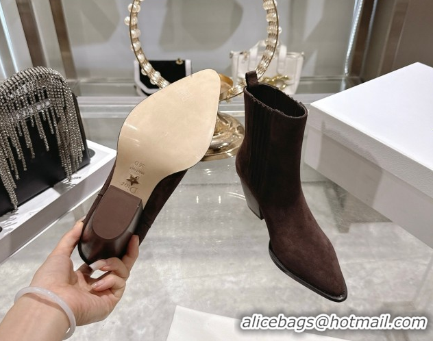 Pretty Style Dior Wild Heeled Ankle Boots 5cm in Suede Chocolate Brown DR121610 1216130