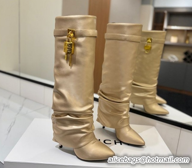 Grade Quality Givenchy Shark Lock Heel High Boots 10.5cm in Calfskin Leather Matte Gold 1210025 2026