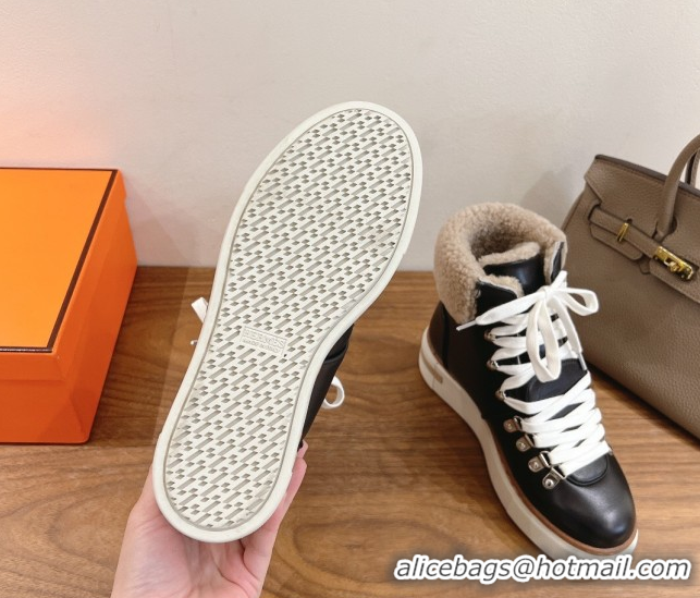 Low Price Hermes Flocon Ankle Boots in Calfskin and Shearling Black 0820061