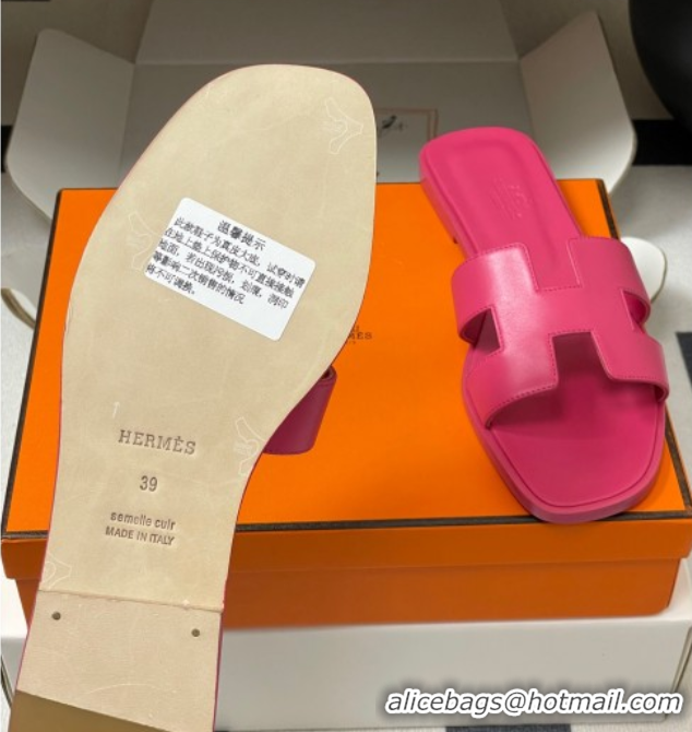 Low Price Hermes Oran Classic Flat Slides Sandal in Smooth Calfskin Dark Pink 2025 H081803