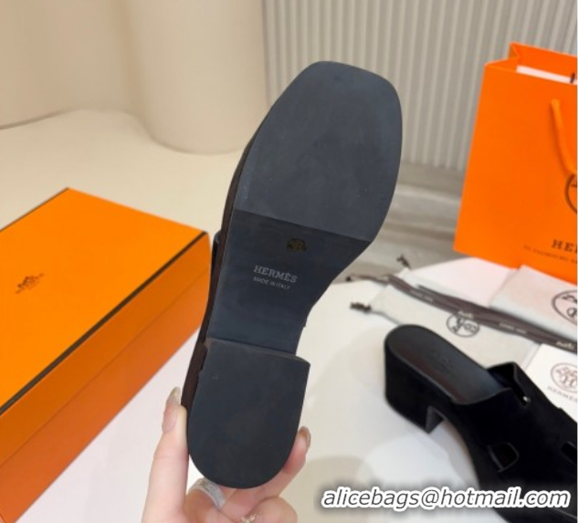 Low Price Hermes Suede Platform Slides Sandal 7.5cm Black 2025 H082003 0820019