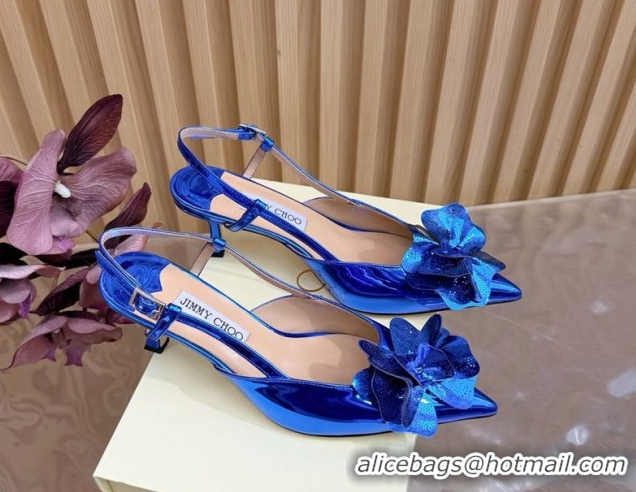 Low Price Jimmy Choo Mimmi Sling Back Pumps 6.5cm in Patent Leather with Flower Blue 0207026 2026