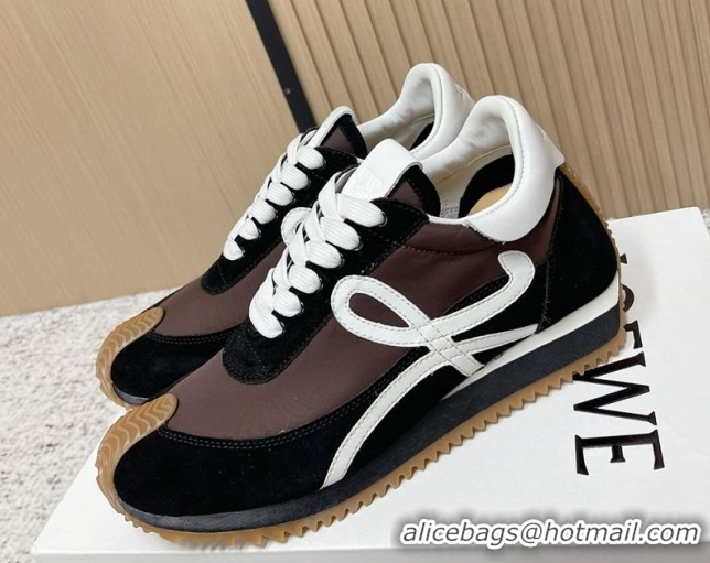 Low Price Loewe Flow Runner Sneakers in Nylon and Suede Brown 0226022