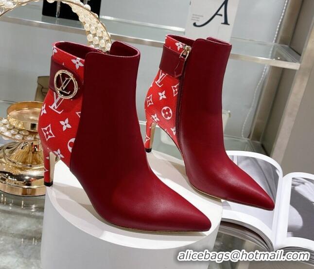 Best Luxury Louis Vuitton Afterglow Leather and Monogram Canvas Ankle Boots 9cm 111807 Red