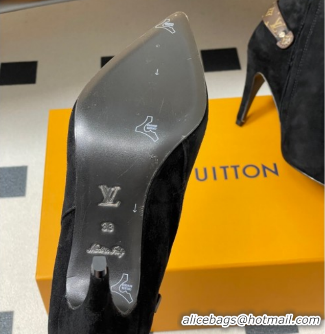 Low Price Louis Vuitton Legacy Heel Ankle Boots 9.5cm in Suede and Back Strap Black 2025 1AIEUG 1021099