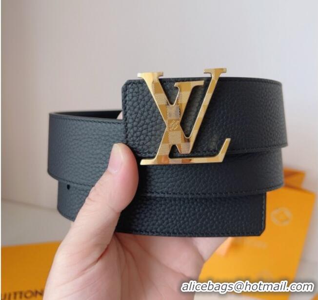 Low Price Louis Vuitton Men's Damier LV Belt 4cm with LV Buckle in Palm-Grained Leather LV011002 Black/Gold 2025