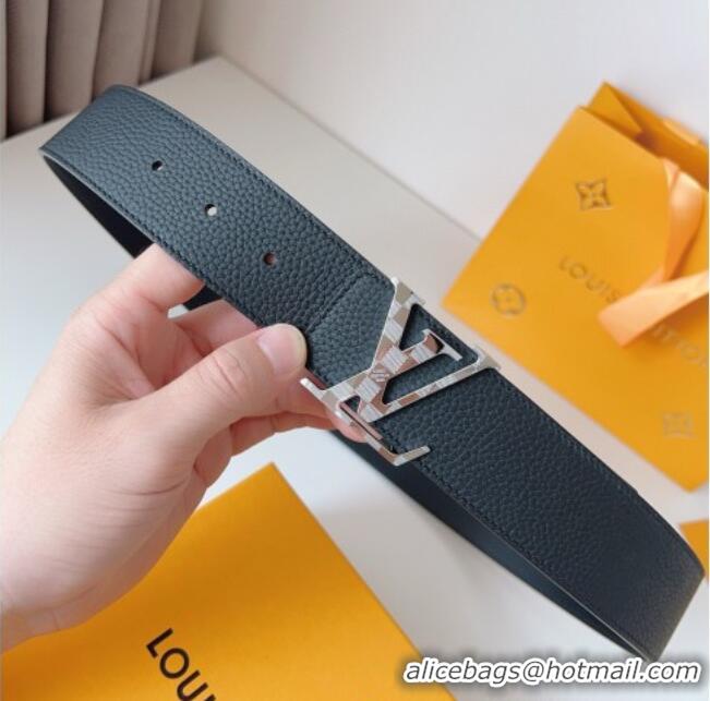 Top Quality Louis Vuitton Men's Damier LV Belt 4cm with LV Buckle in Palm-Grained Leather LV011002 Black/Silver 2025