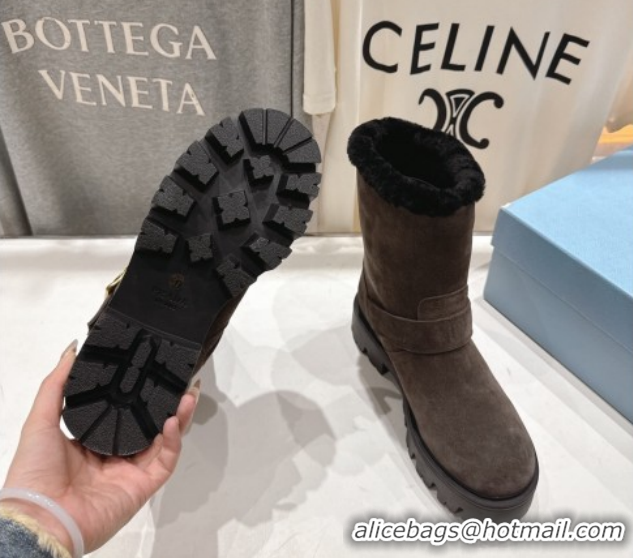 Good Quality Prada Suede and Shearling Booties with Buckle 1U187O Brown 2026