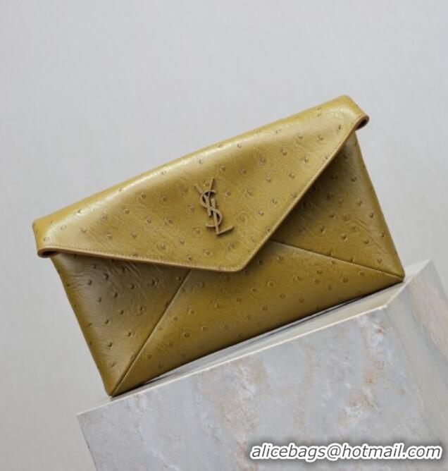 Best Price Saint Laurent Cassandre Large Envelope Pouch in Embossed Leather 769307 Yellow 2025
