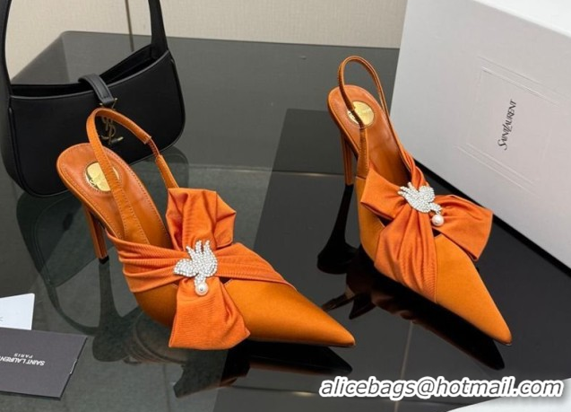 Best Price Saint Laurent Dove Slingback Pumps 10.5cm in Satin with Bow Orange 2026 SL022404