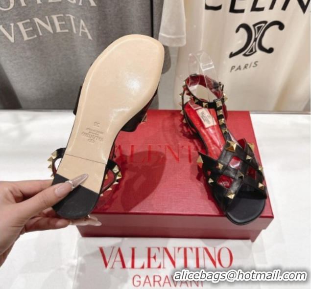 Low Cost Valentino Studdy Flat Sandals in Calfskin Leather Black 0224043